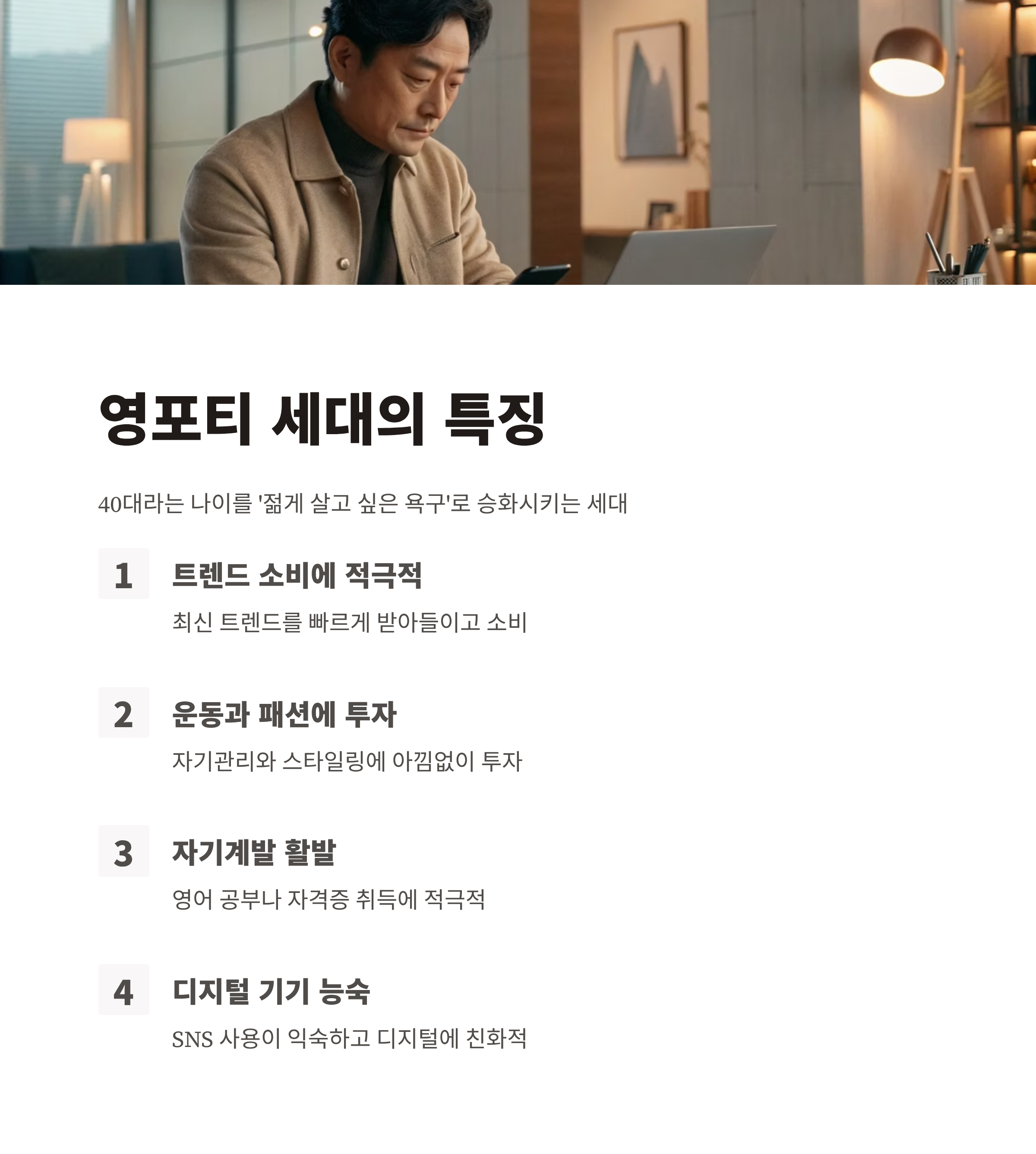 이번 글에서는 '영포티'의 정확한 뜻과 등장 배경, 특징은 물론