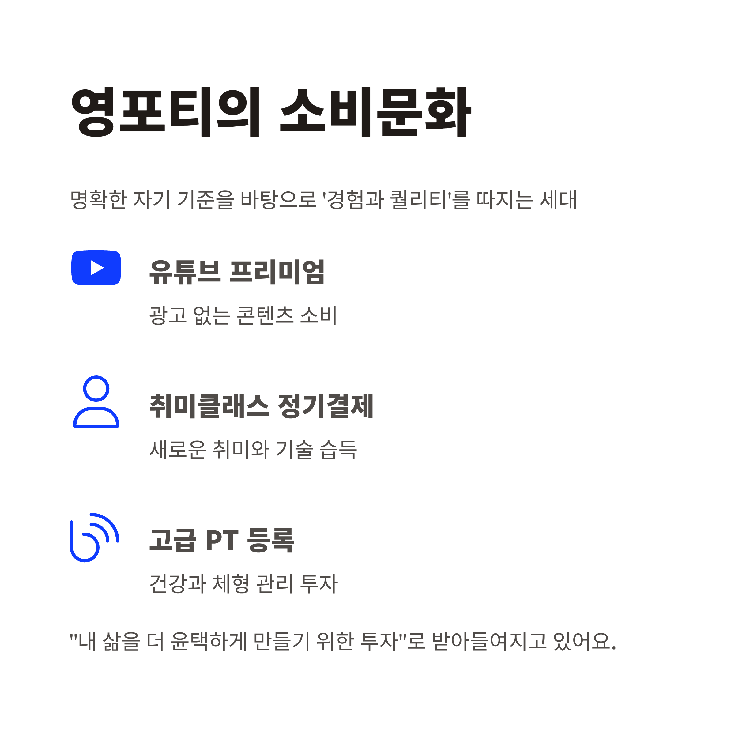 영포티는 명확한 자기 기준을 바탕으로 소비해요.