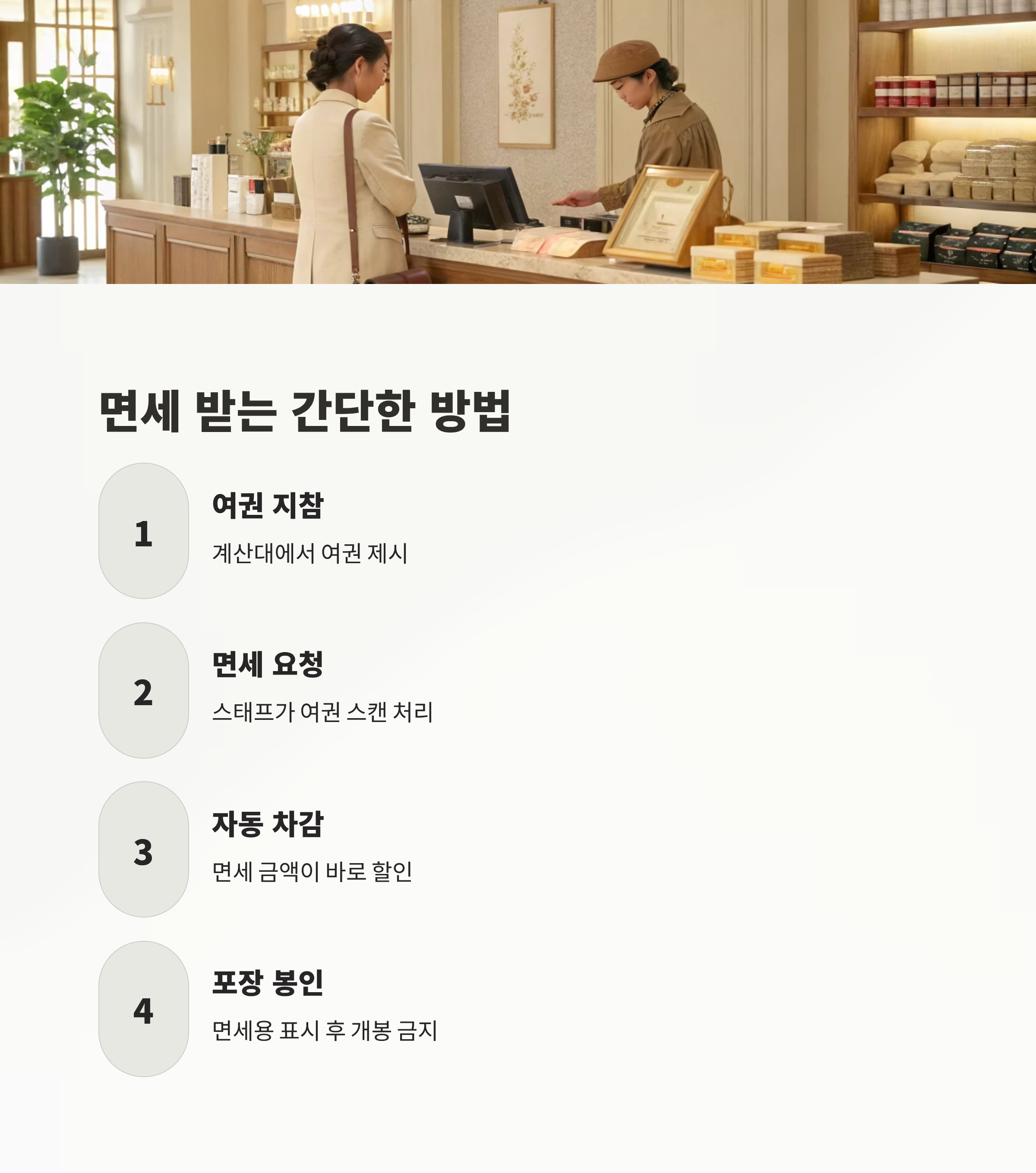 - 여권을 꼭 지참해야 면세/쿠폰 적용 가능