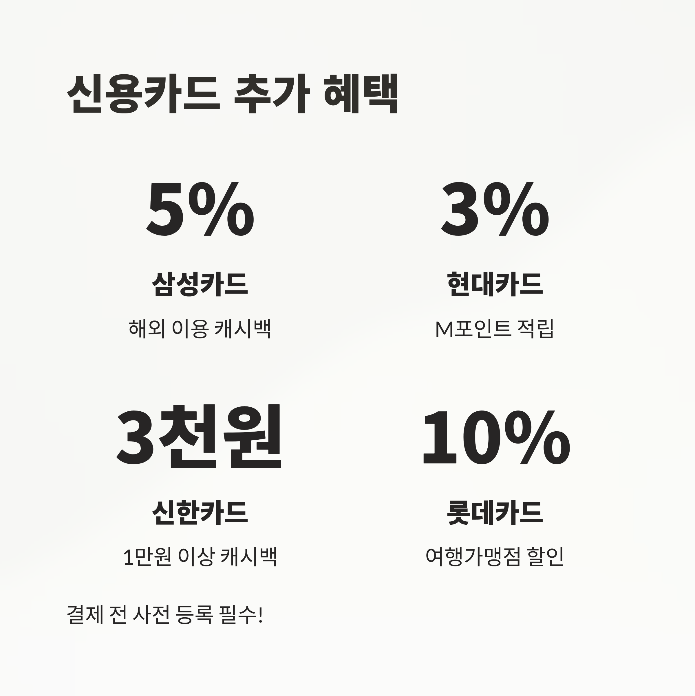 | 삼성카드 | 해외 이용 5% 캐시백 (사전 등록 필수) |