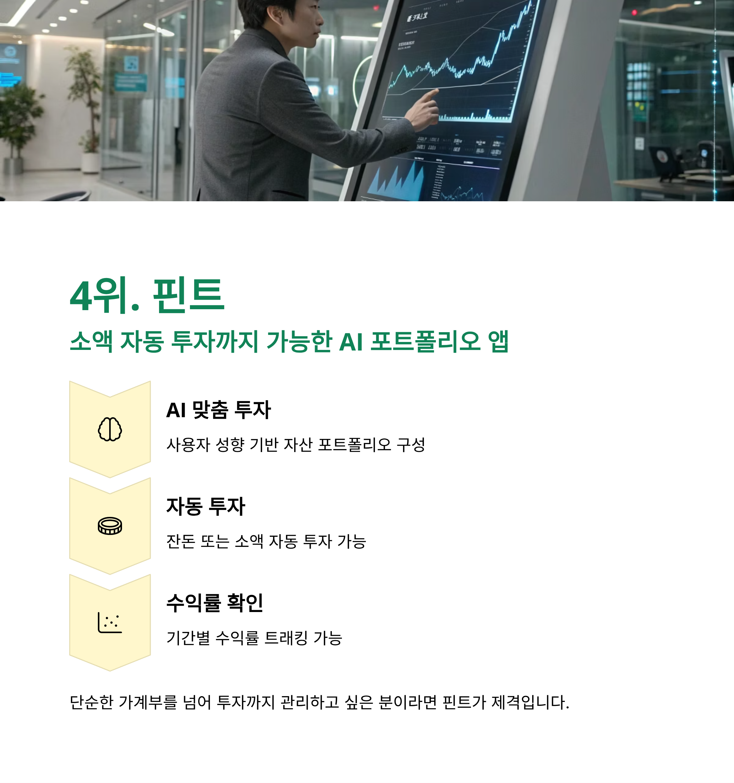 | 투자까지 자동 관리 | 핀트 | AI 기반 자동 포트폴리오 |