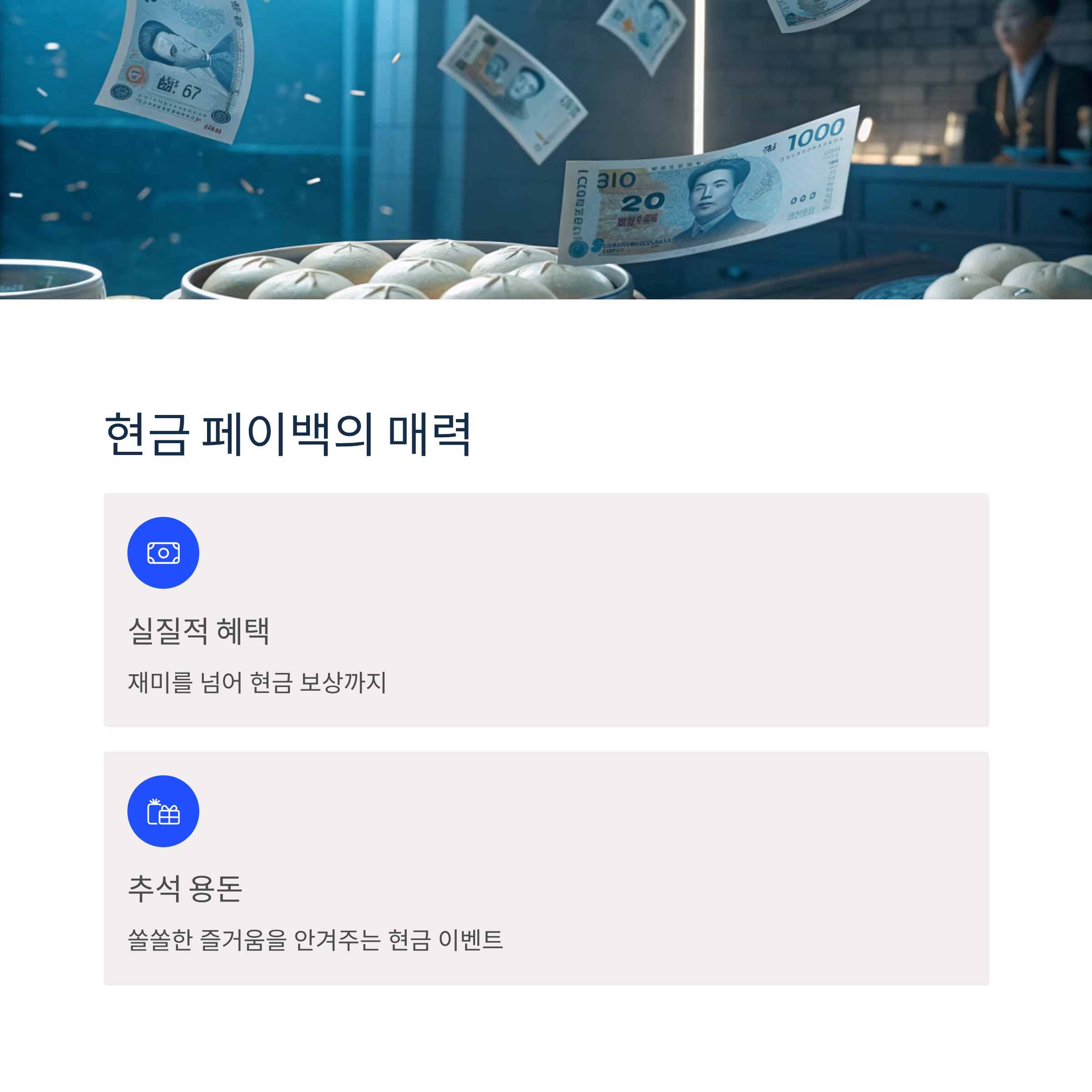 | 혜택 | 최대 5만원 랜덤 현금 지급 |