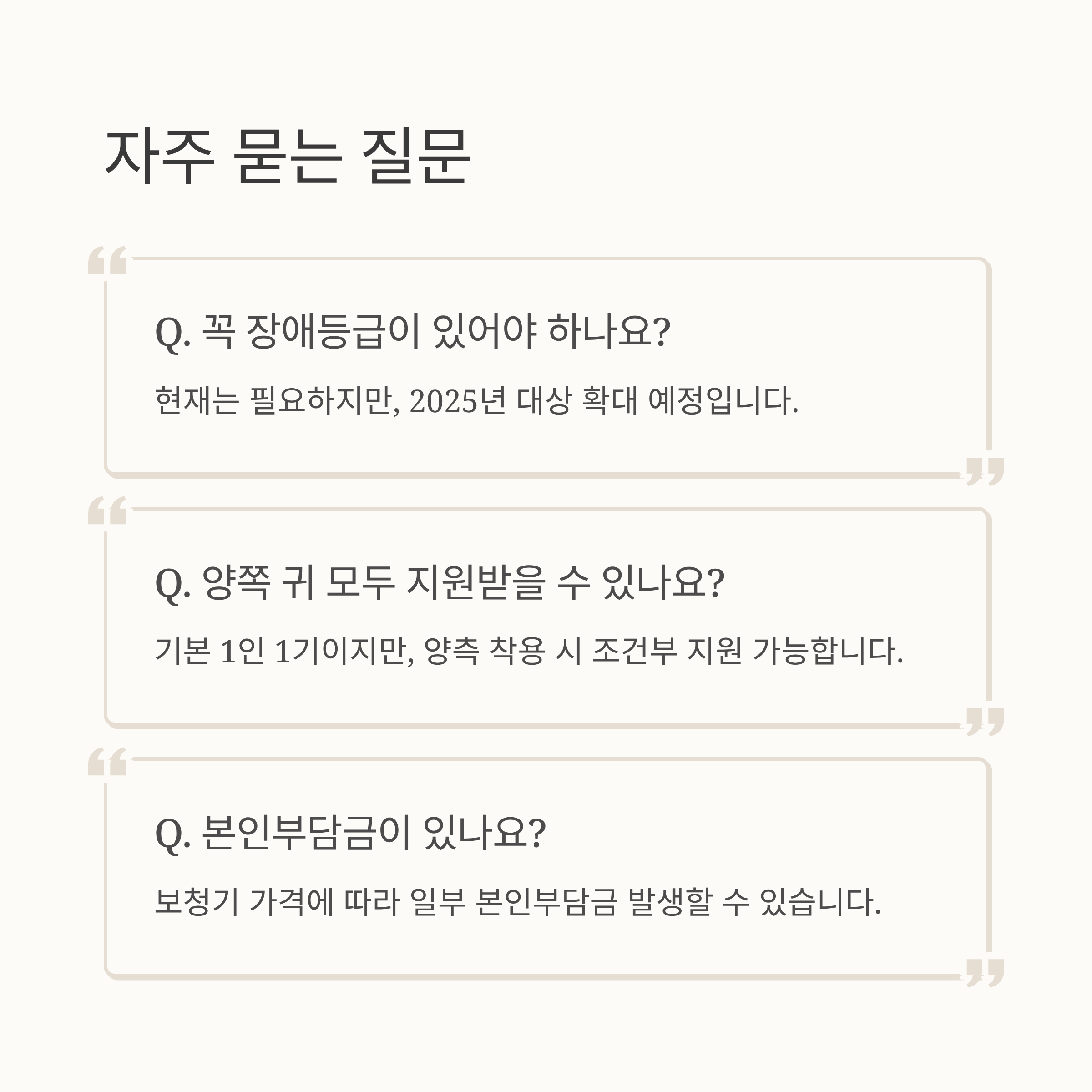 | Q. 두 개 사면 두 번 지원되나요? | 기본적으로 1인 1기 기준이지만 양측 착용 시 조건부 지원 가능 |