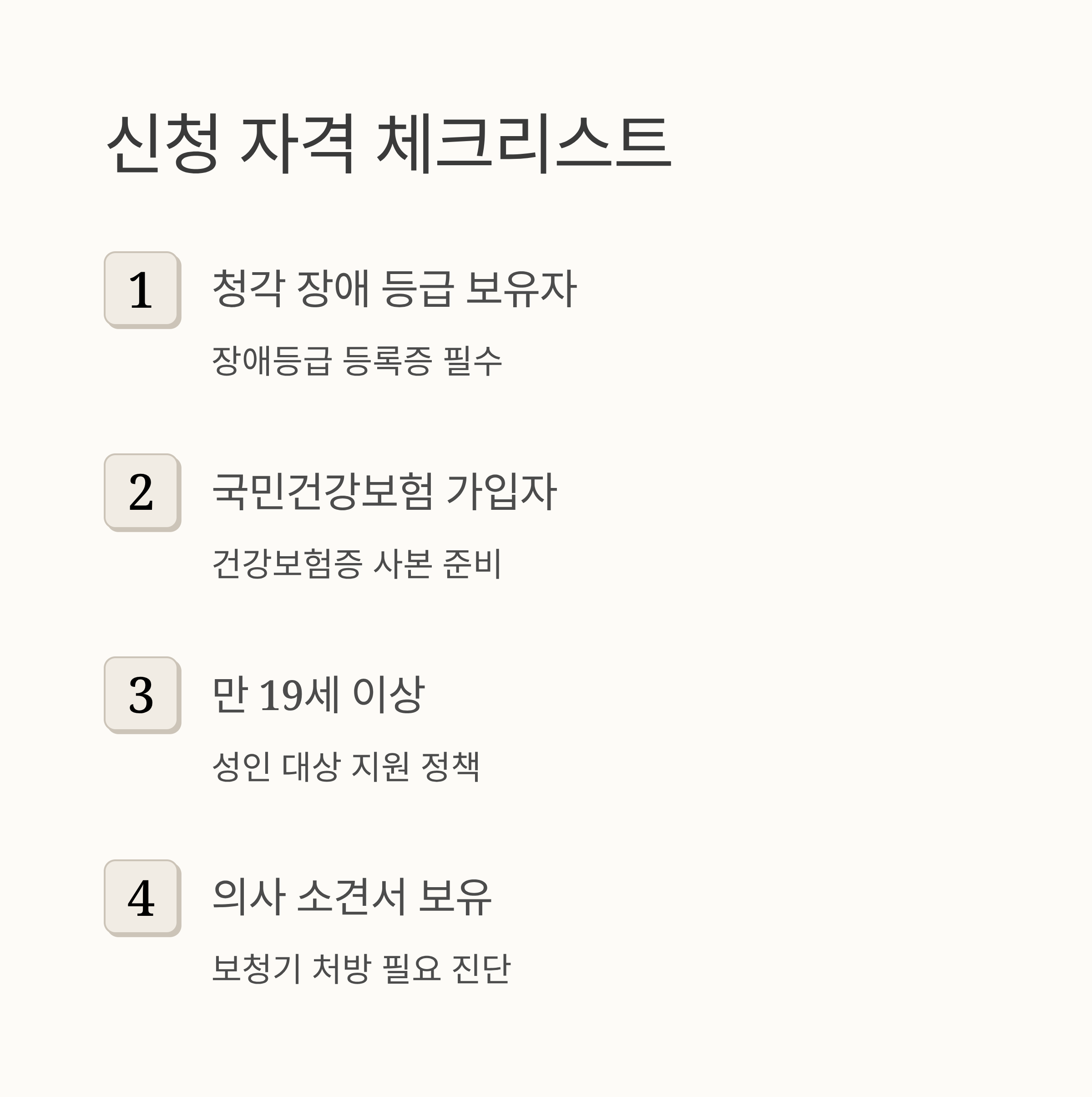 2025년부터는 등급 외에도 ‘경도 청력 손실자’ 등으로 대상이 넓어질 가능성이 있다고 하니, 아직 등급이 없다면 가까운 이비인후과에서 먼저 청력 검사를 받아보는 것도 좋은 출발입니다.